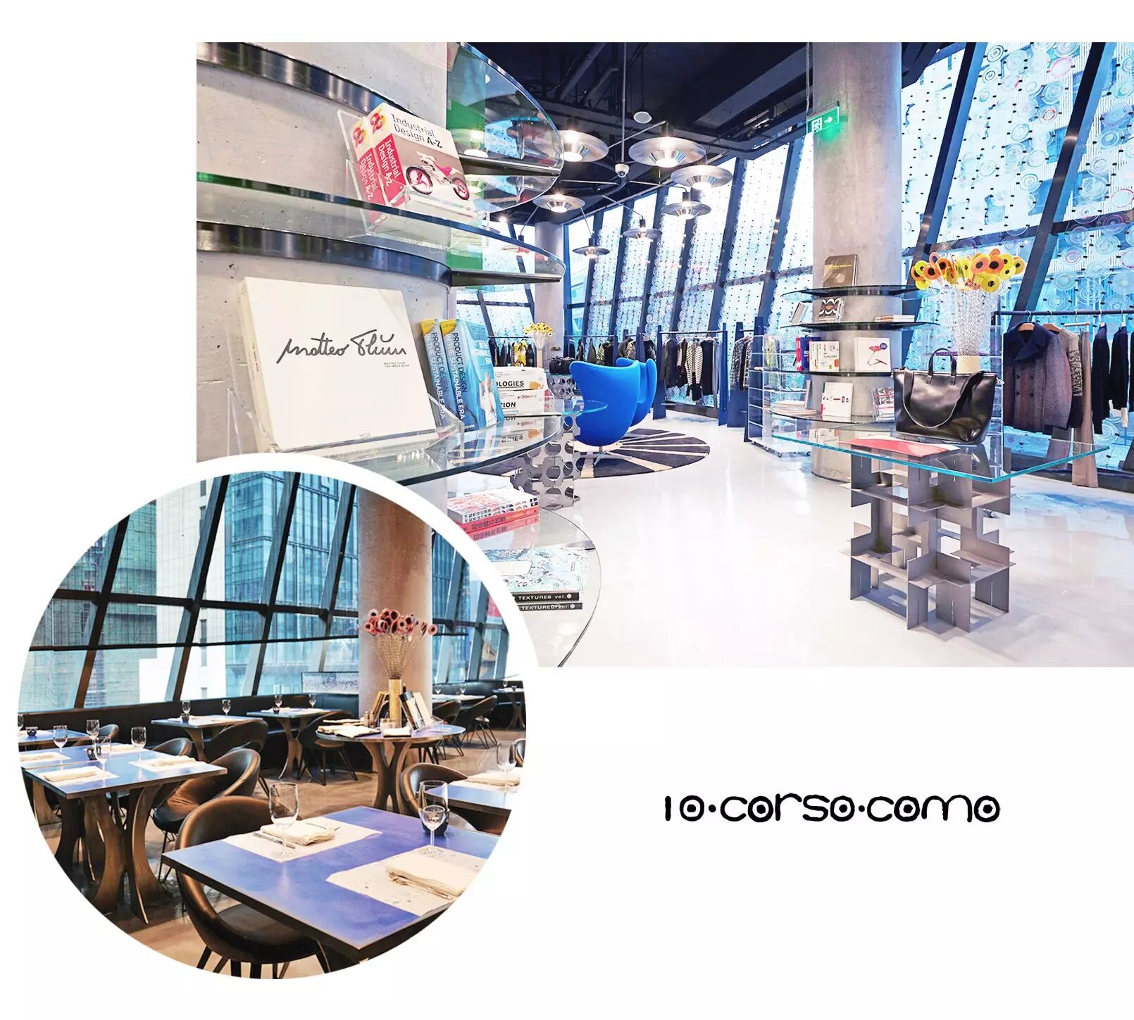 逛完展览,不妨在10 Corso Como里逛一圈,这里囊括了各式精致的设计类书籍,还有全球最独一无二的时装品牌,从Fendi、Chloé、Jil Sander,到小众品牌如MaisonMartin Margiela,Eclectic by Tom Dixon、Fornasetti、Ligne Blanche、Bosa 等。逛累了可以到10 Corso Como餐厅享用一份米其林星级主厨独家打造的精致意式午餐,选个靠窗的位置,好一边尝着嘴边的美食,晒着暖暖的太阳发会儿呆。