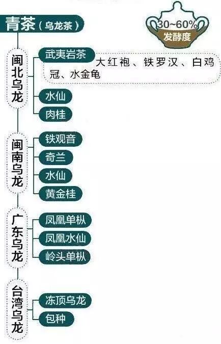 基础茶类:绿茶、黄茶、白茶、青茶(乌龙茶)、红茶、黑茶六大类