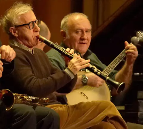 在生活中,单簧管是除了拍电影之外伍迪.艾伦最喜欢的事情,在纽约城最古老的爵士乐团中,你会看到单簧管演奏家伍迪.艾伦这样的头衔,他已经演奏了几十年单簧管,每周一的晚上,他都会雷打不通的来到酒吧,坐在台上默默地吹起自己的单簧管,一曲结束之后,静静的接受着台下的掌声,比起奥斯卡殿堂的闪光灯,他更喜欢这样的氛围。
