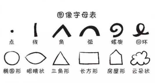 我们来给大家介绍最简单的图像字母表。这张表只有6个形和6个面,共12个“字母”,其中