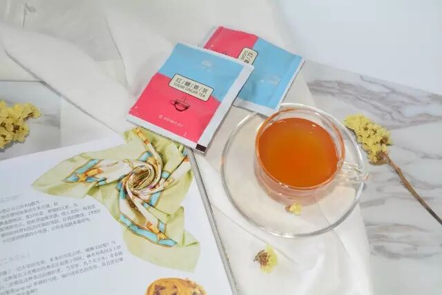 一小袋九珍堂红糖姜茶加上几片红枣,开水即冲就是一杯养生茶啦!