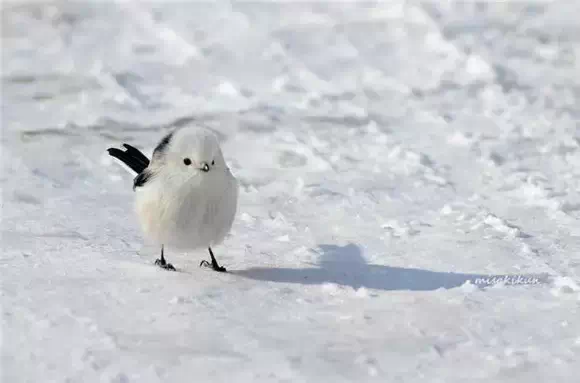 跟生活在日本其他地区的长尾山雀不一样,这种山雀整张脸都是白色的。看它歪着脑袋一脸无辜的样子,心都被萌化了。