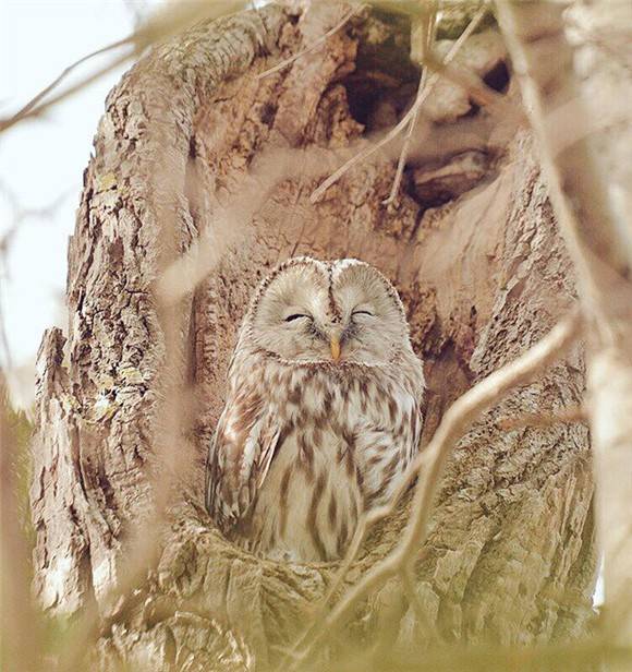 好了好了最萌是你了!可是……别看它眼睛眯起来总像笑着,喜欢睡觉的北海道猫头鹰其实很凶猛的,因为它会以其他6种可爱的小动物为食。