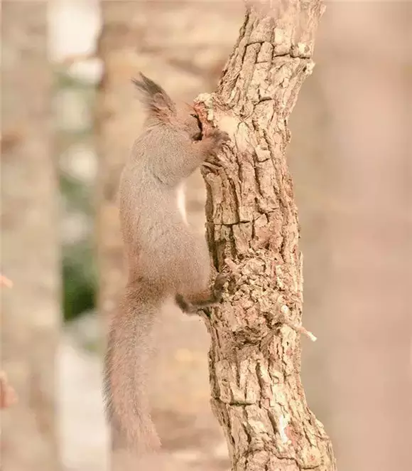 红松鼠在欧洲和亚洲很常见,而这是北海道独有的红松鼠亚种。看起来笨笨的。