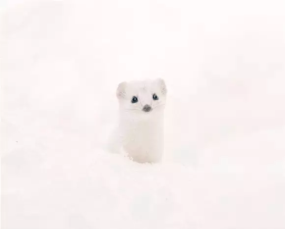 有见过这么纯白无暇人畜无害的黄鼠狼吗?它的皮毛会在冬季变成白色,方便在雪地里伪装踪迹。好喜欢~