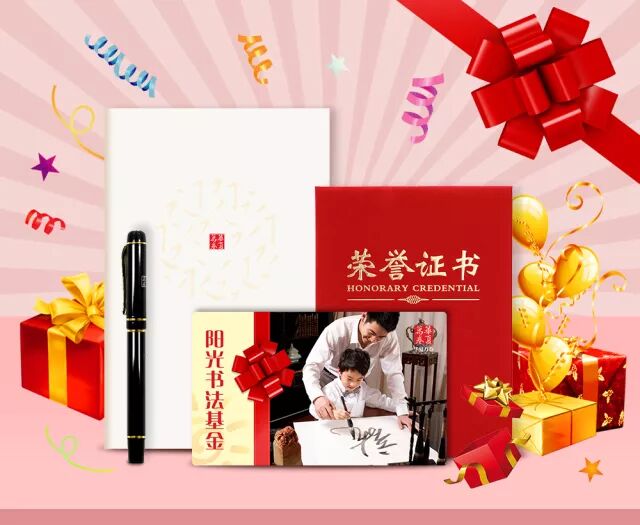 价值200元的阳光书法基金+获奖证书+品牌笔记本