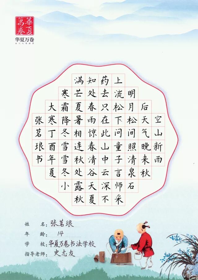 参赛作品上须写清楚“参赛选手姓名-年龄-组别-指导老师姓名-属学校”。参赛作品不得重复参赛,每名参赛选手只能提交一幅作品。