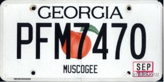 佐治亚州车牌上的水果是桃子,它是“Peach State”。新鲜的佐治亚桃子一年只供应16周(从五月中旬到八月)。这些桃子的祖先来自于我们中国。这些桃子沿着丝绸之路先进入了欧洲,又最终来到了美国大陆。每年佐治亚州都举办一次桃子节,届时会做一张巨大的桃子馅饼请游客品尝。
