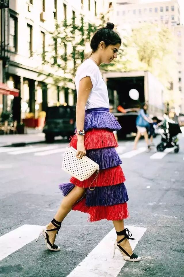 如果想要挑战有设计感的半裙,记得上衣也要个性起来。