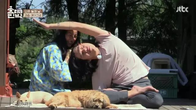 然后孝利会去做瑜伽,尚顺去喂猫狗,回来煮早餐一起吃。