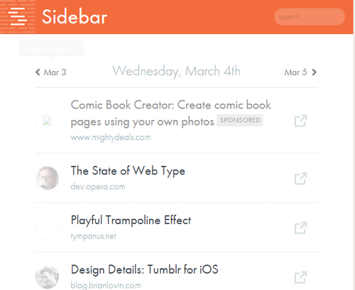 Sidebar整个网站都很简单,它的作用就是,每天添加精选的五个设计相关的链接,没事的时候可以随时进入网站,看看今天有哪些“小鲜肉”。