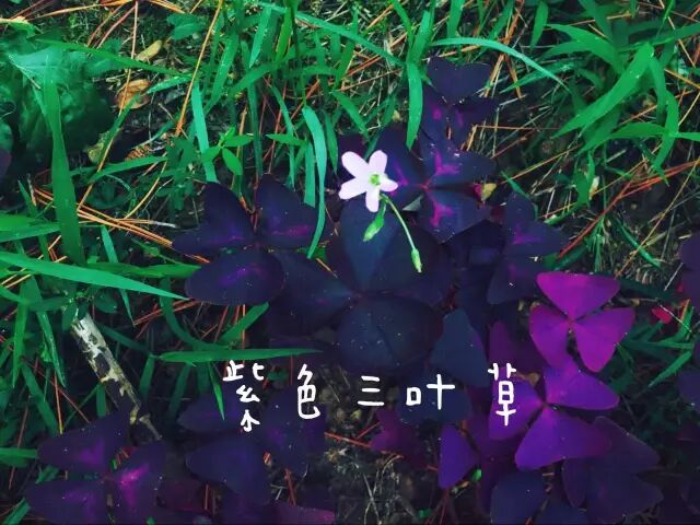 今天我妹在“小森林”找到的幸运紫色四叶草,