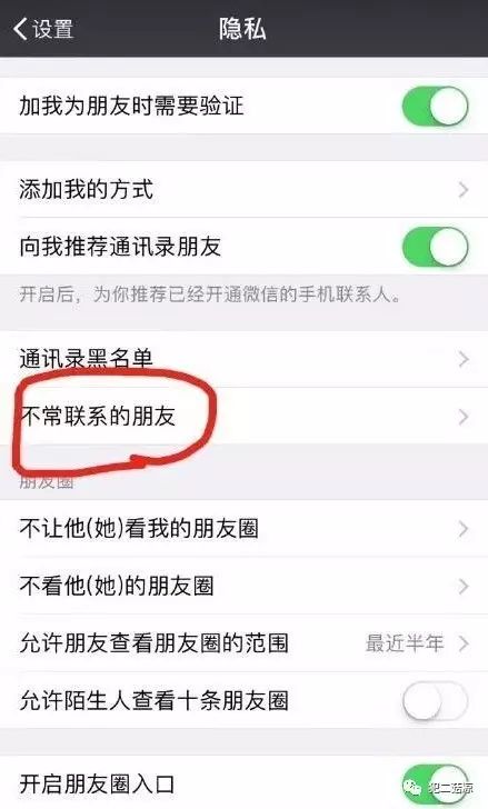 话说,最近几天,微博、公众号、朋友圈都流传着这样一个传说,哦,不,消息,说是微信新版本进行内测,增添了一个新功能——"不常联系的朋友",点进去以后选项有"半年内无单聊"、"无共同小群"、"半年内没有回复过他(她)的朋友圈"三个,如下图:
