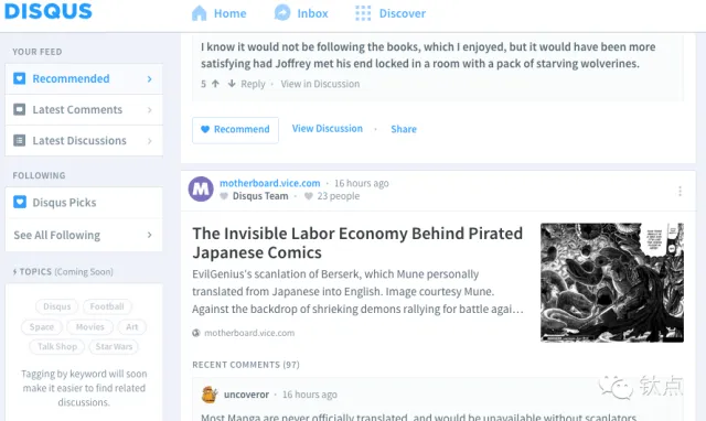 不管如何,这似乎是Disqus一直在进行的社交尝试。虽然几年过去,他们还没有作为一个有影响力的社交网络被大众接受,不过谁知道接下来会发生什么呢。