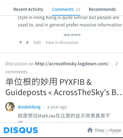 比如说,上方的过去评论截图不仅具有用户的信息和过去活动记录,而且是在原文章的评论页面上显示,而不是像过去一样需要离开文章页面跳转到Disqus的用户档案面查看。
