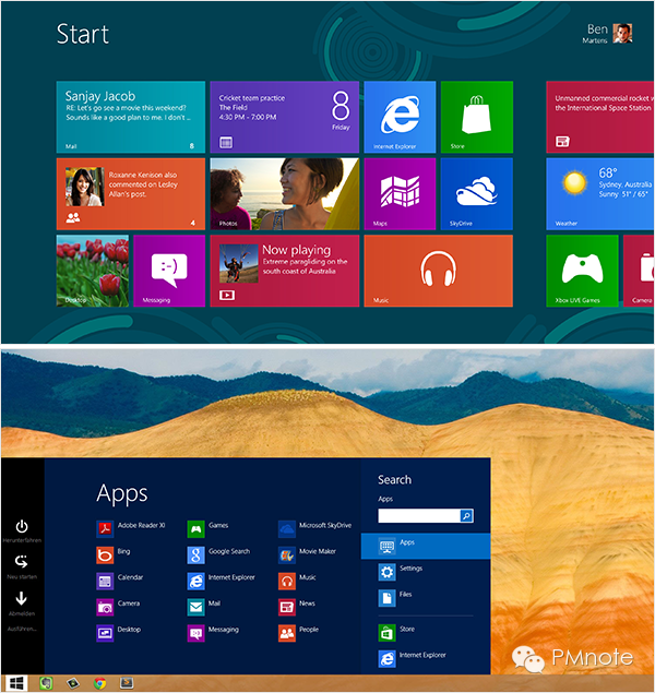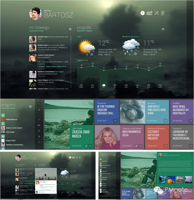 Metro风格采用大量色彩,分隔不同的信息模块。保持大模块区域面积相等,模块内部可以细分出不同内容层级,单色模块只承载一种信息内容,配上对应功能图标识别性高。