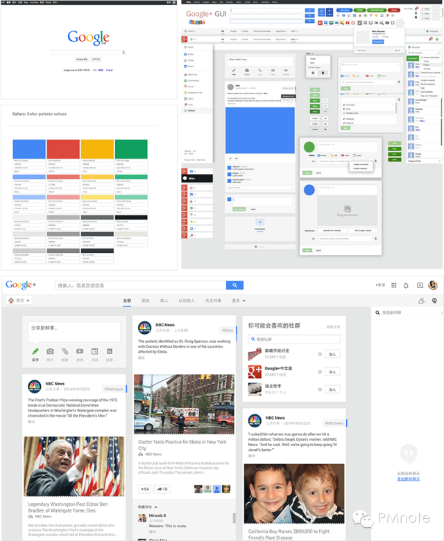 观点:谷歌设置了四种品牌色,通过主次、合理的比例应用在界面中,并通过组控件不同的交互状态合理分配功能任务。