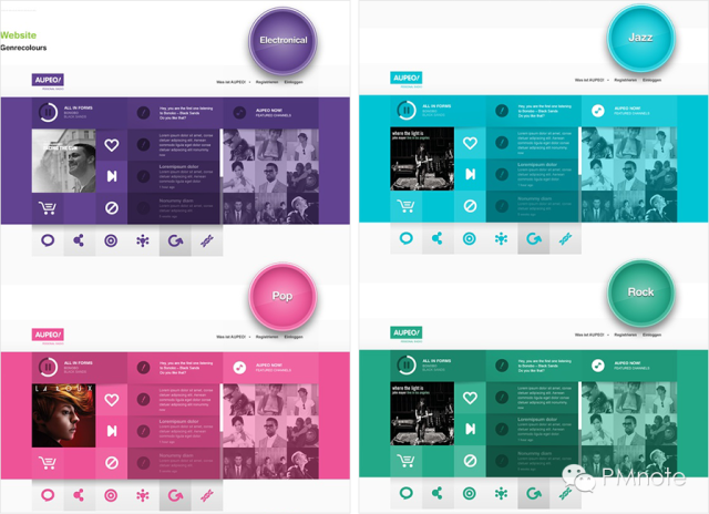 观点:同色调不同色彩的模块,就算承载着不同的信息内容也能表现很和谐。