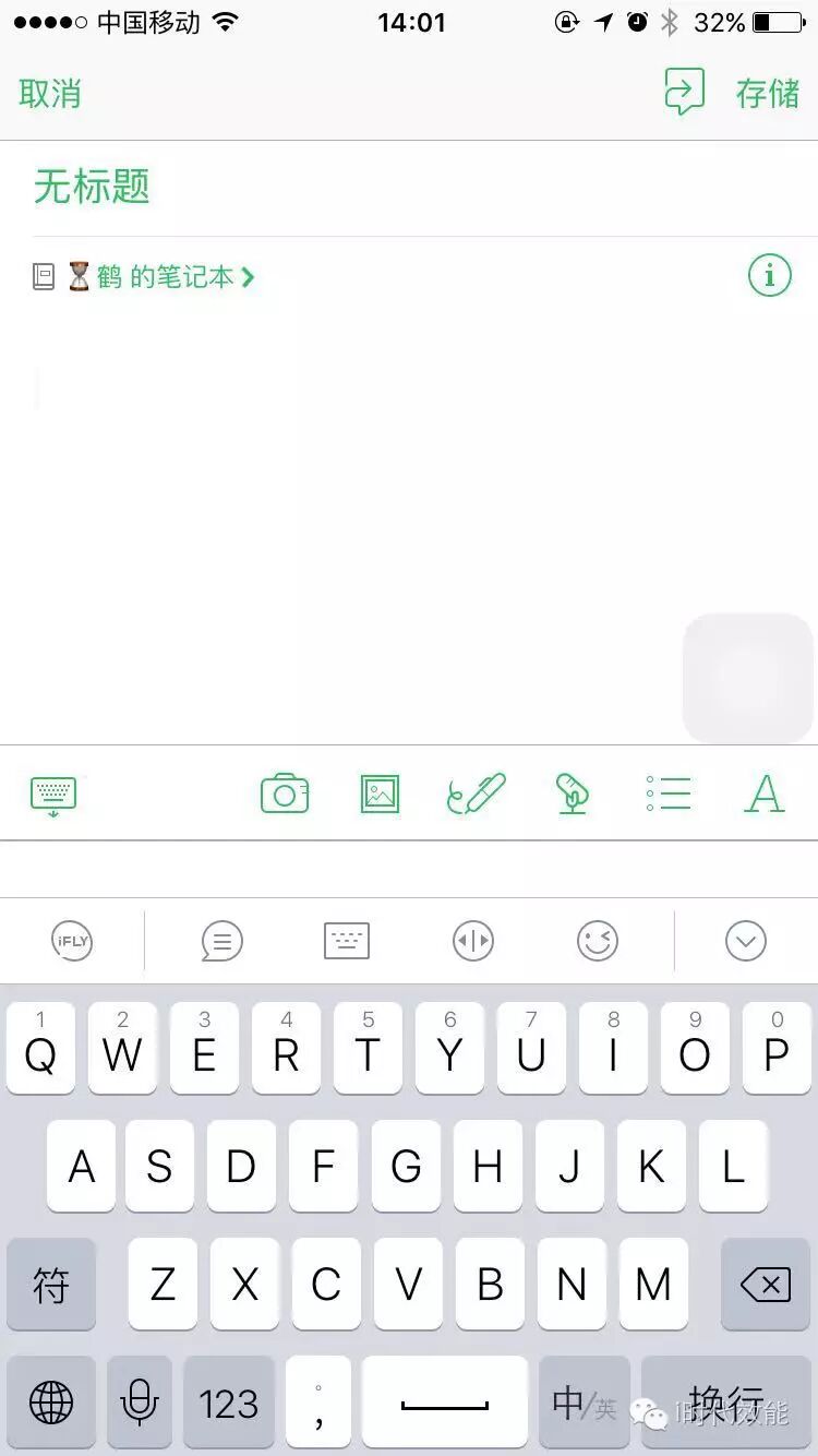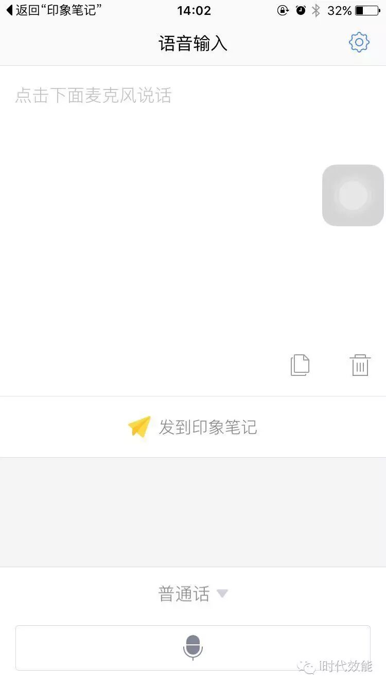 按照思维导图,把听到的内容口述出来。这里,用讯飞语音输入法,可以将你说的内容直接翻译成文字,然后直接发送印象笔记。点击左下角的话筒:
