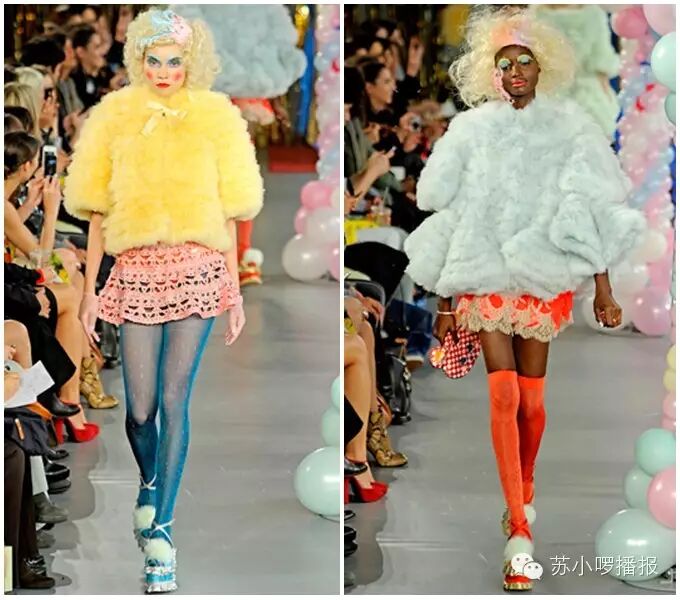 整场秀多看几眼都觉得伤眼的浮夸Meadham Kirchhoff在2012春夏也出过带着毛球的松糕鞋。