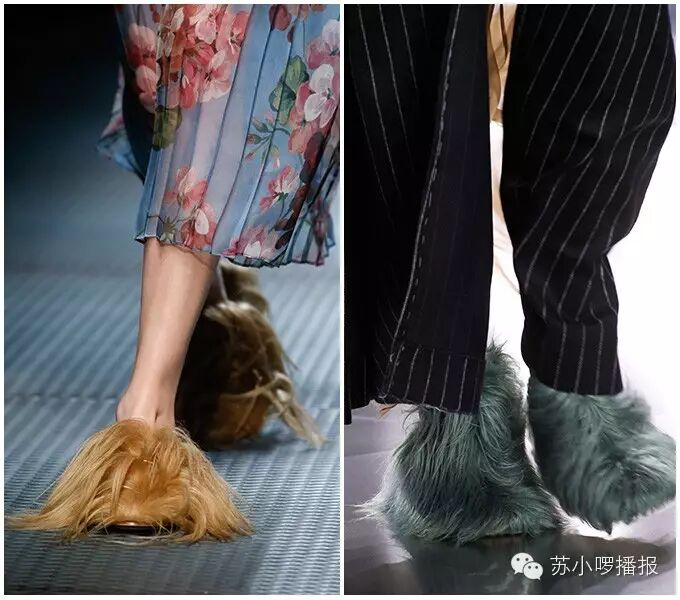 先来示范的还是Gucci。这款算是比较低调的毛毛鞋,低调到似乎根本不用买新款,只要在高跟鞋里加个长毛鞋垫好像就能完成。