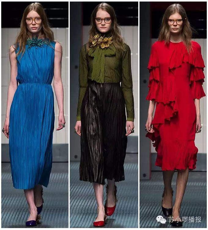 以下第一排是:Gucci,第二排分别是:Rochas、D&G、Thakoon。