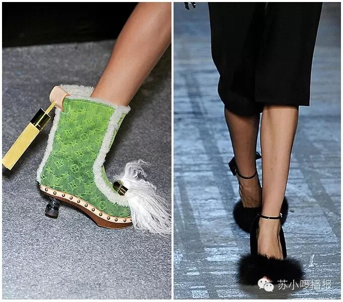 毛毛鞋还真不是今年才出现的,在2010年Louis Vuitton和Alexander Wang就推出了带着小范围皮草的鞋子。