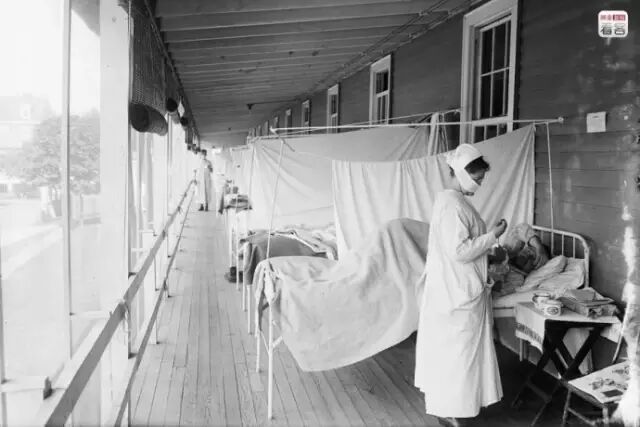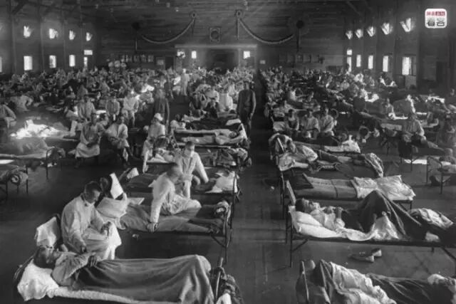 1918年的流感,又称西班牙流感(Spanish Flu),最早发生于1918年春季。当年3月4日,美国堪萨斯州福斯顿军营出现了第一例有记载的病例,随后两周,疾病突然蔓延开来。图为1918年,福斯顿营地,由于医院人满为患,许多感染流感的人被送往这里接受治疗。